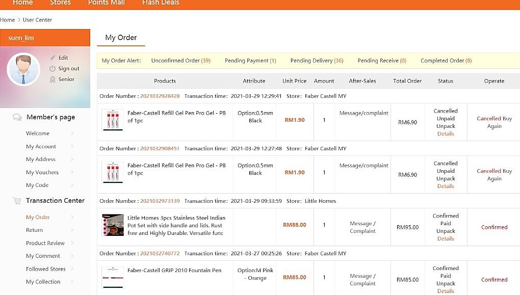 Home > User Center > My Order (Order List)