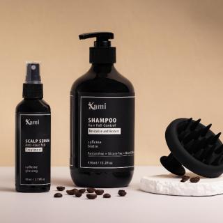 Your Ultimate Defence Against Hair Fall Embark on a journey to reclaim the health and vitality of your hair with KAMI Scalp Serum, an advanced anti-hair fall treatment meticulously crafted to address the root cause of hair loss. Enriched with the dynamic duo of caffeine and ginseng, this serum is a powerful elixir designed to revitalize your scalp and promote stronger, more resilient hair.