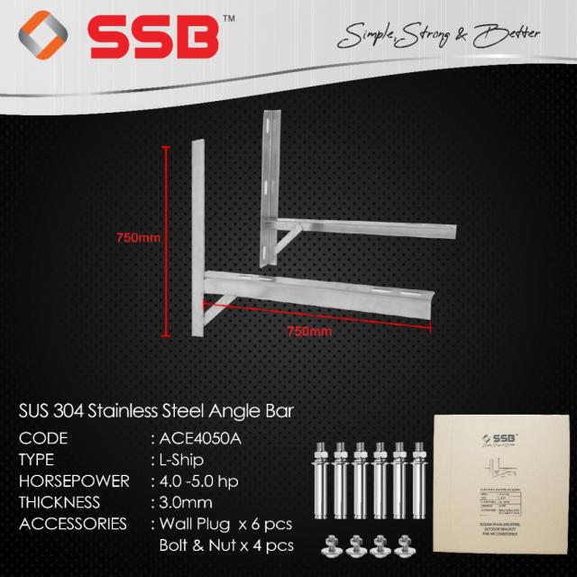 PRODUCT DETAIL OF SSB SUS304 STAINLESS STEEL L-SHIP OUTDOOR BRACKET 4.0-5.0HP MODEL: ACE4050A C/W S/S304 BOLT AND NUT & WALL PLUG