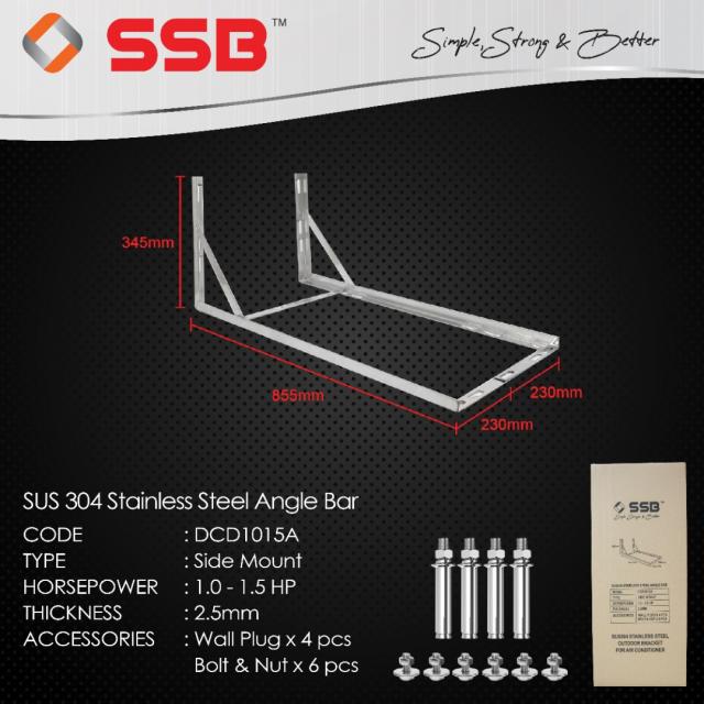 • SSB SUS304 STAINLESS STEEL SIDE MOUNT OUTDOOR BRACKET 1.0-1.5HP MODEL: DCD1015A S/S304 BOLT AND NUT & WALL PLUG