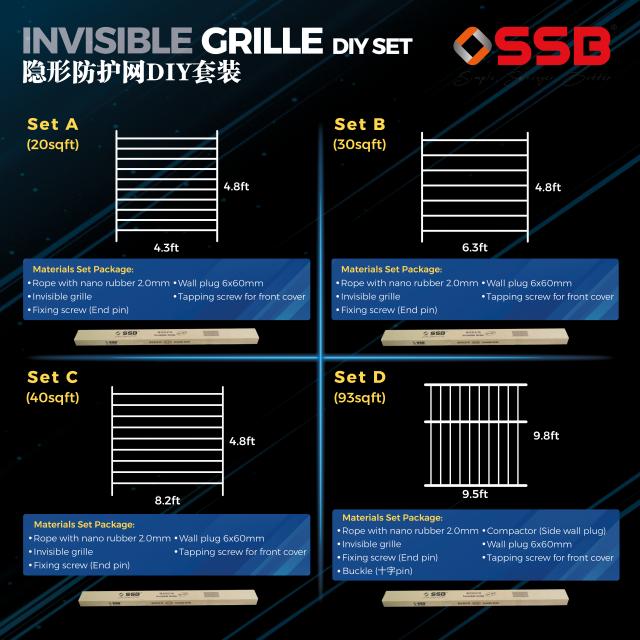 PRODUCT DETAIL OF SSB INVISIBLE GRILLE 30SQFT DIY SET MODEL: IGDIYAC30SQFTA