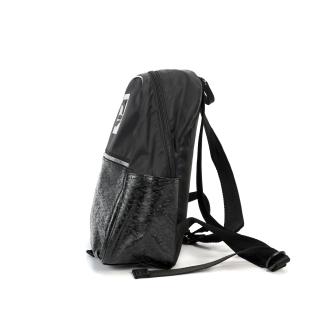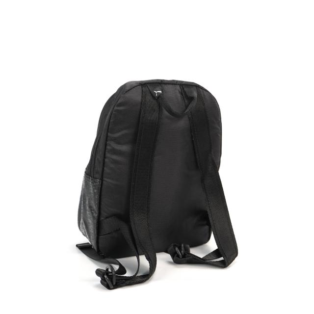 This collection stands out day to night mixing soft satin fabric with shape-shifting trim PU and bold plastic zippers.Two-way zip opening into main compartment with plastic teeth, zip pocket on front, zip pocket inside, 150D Polyester lining with PU backing and tonal PUMA repeat print, webbing shoulder straps with body fabric overlay, carry handle on top, plastic hardware, padded back and base panel, round PUMA heritage metal zip pullers with embossed PUMA Wordmark, metal zip puller.