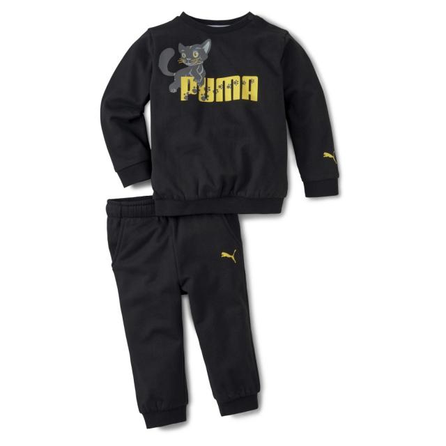 LITTLE PAWS IN THE CUTEST WAY LOVING PUMA, SPORT & HAVING FUN.Top:Graphic rubber print Cat Logo rubber print Rib crew neck, sleeve cuffs and waistband Button placket in shoulder seam for easy in and out for size 62-86 Regular fit Made with cotton from Better Cotton Initiative Pants:Graphic rubber print Elastic waistband with internal drawcord for customized fit Rib cuffs Slim fit Made with cotton from Better Cotton Initiative