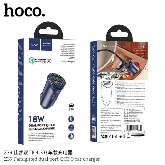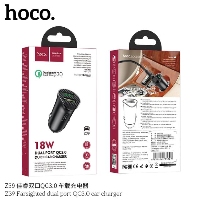 HOCO Z39 FARSIGHTED DUAL PORT QC3.0 CAR CHARGER